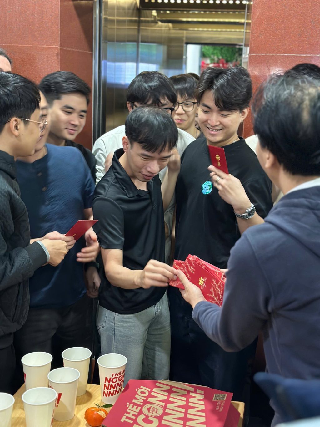 Tâm điểm của buổi sáng nay chắc chắn thuộc về những phong bao lì xì đỏ rực từ Sếp. Cầm lì xì trên tay là thấy một năm Bính Ngọ rực rỡ, sung túc phía trước rồi!