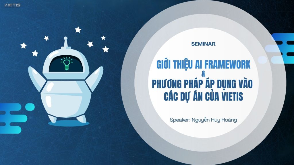 Mở đầu chuỗi seminar năm 2026, anh Nguyễn Huy Hoàng – Phó phòng Sản xuất, Tech Leader đã mang đến buổi chia sẻ với chủ đề “Giới thiệu AI Framework và phương pháp áp dụng vào các dự án của công ty” – một chủ đề đang nhận được nhiều sự quan tâm. Với phong cách chia sẻ gần gũi, dễ hiểu và giàu tính thực tiễn, anh Hoàng đã mang đến những kiến thức về AI Framework cũng như cách áp dụng vào các dự án thực tế tại VietIS, thu hút gần 50 người tham gia cả online và offline.