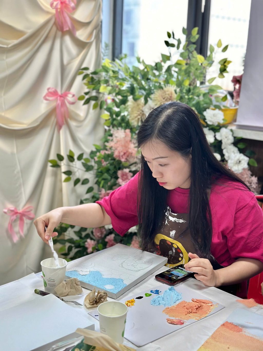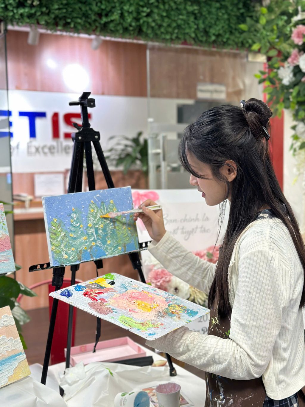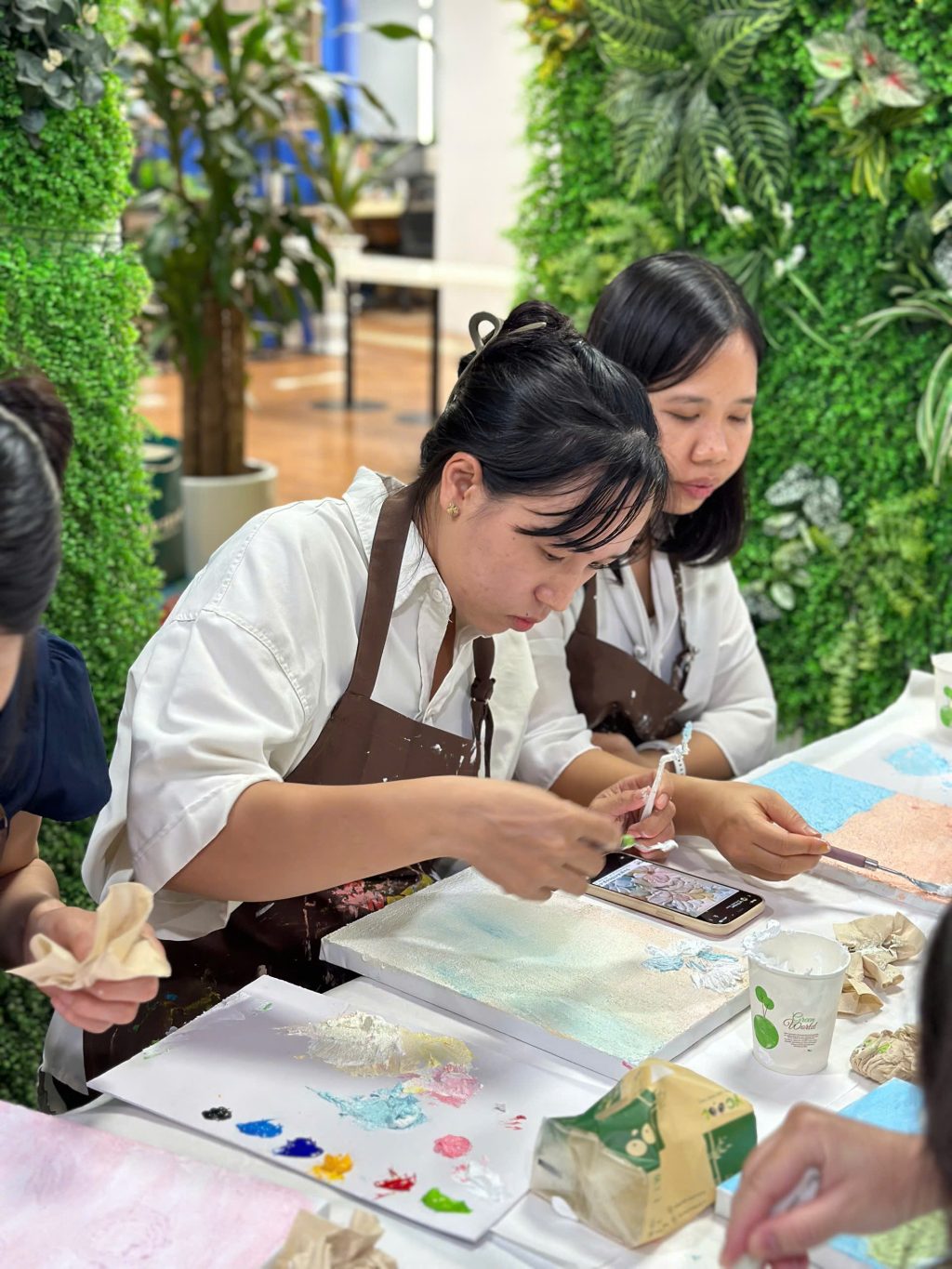 🎨Chiều lãng mạn, các nàng thơ lại hóa thân thành họa sĩ. Từng nét cọ, từng mảng màu đắp nổi tại workshop vẽ tranh 3D đều kể một câu chuyện rất riêng. Không có bức tranh nào giống hệt nhau, bởi mỗi tác phẩm là một “độc bản”. Cũng như các bạn vậy!